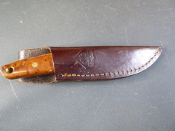 Blankwaffen > Historische Originale ![]() Seltenes Puma Pro Skinner braune Lederscheide mit Logo Griff Wurzel Holzschalen Herst. PUMA IPeGun-ID: 20121029