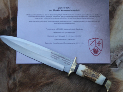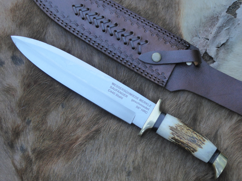 MERKLE Saufänger, altes Modell, geschmiedet, graviert, LederscheideeGun-ID: 20121842