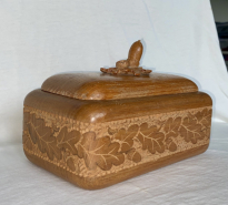 Geschnitzte Holzdose Deckeldose Eichenlaub Schnitzerei antik Jäger-SchatulleeGun-ID: 20125156