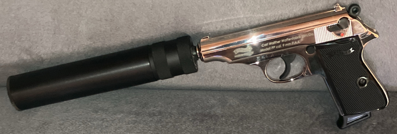 NEUE Walther PP in Poliertem Chrom (vernickelt/Nickel) 9mm P.A.K. als reines VitrinenstückeGun-ID: 20127301