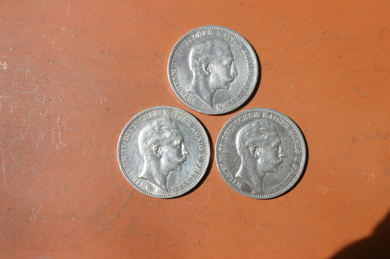 Silber Münzen alte deutsche 3 Reichsmark 3x Wilhelm IIeGun-ID: 20129628