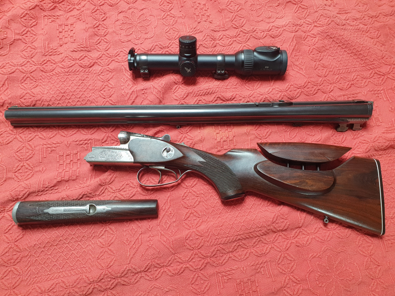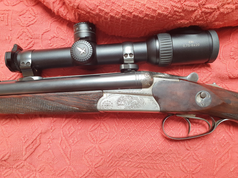 Jagdwaffen > Einsteckläufe Drilling Simson Suhl, Büchsflintendrilling, Keller&Simmann, 9,3x74R, 16/70eGun-ID: 20131657