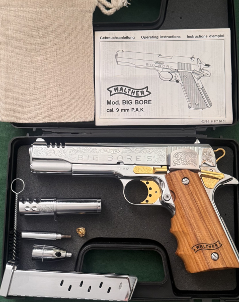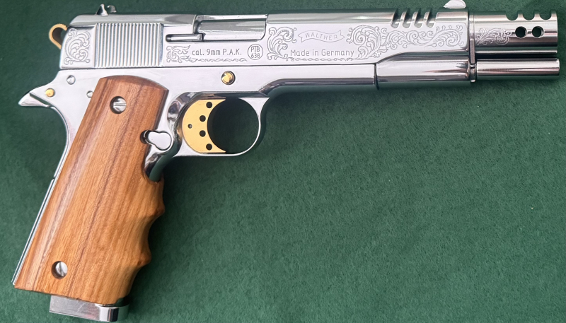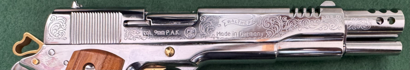 Walther Big Bore‘S‘ ,Handgraviert, Verchromt/ Vergoldet, 9mm P.A.K SchreckschusspistoleeGun-ID: 20134487