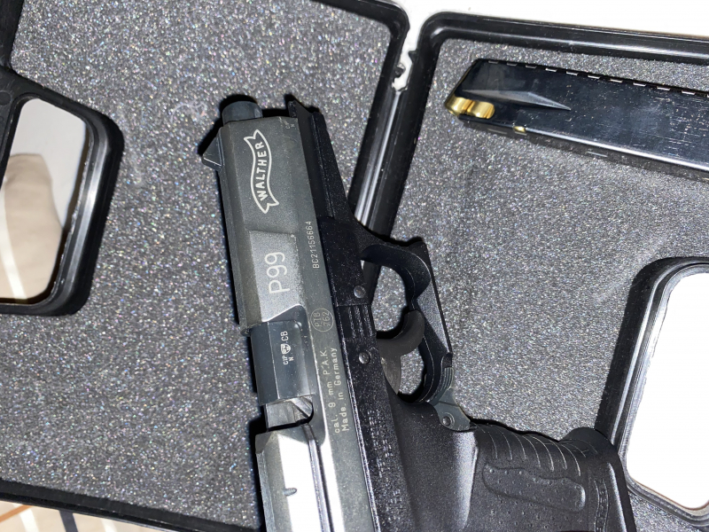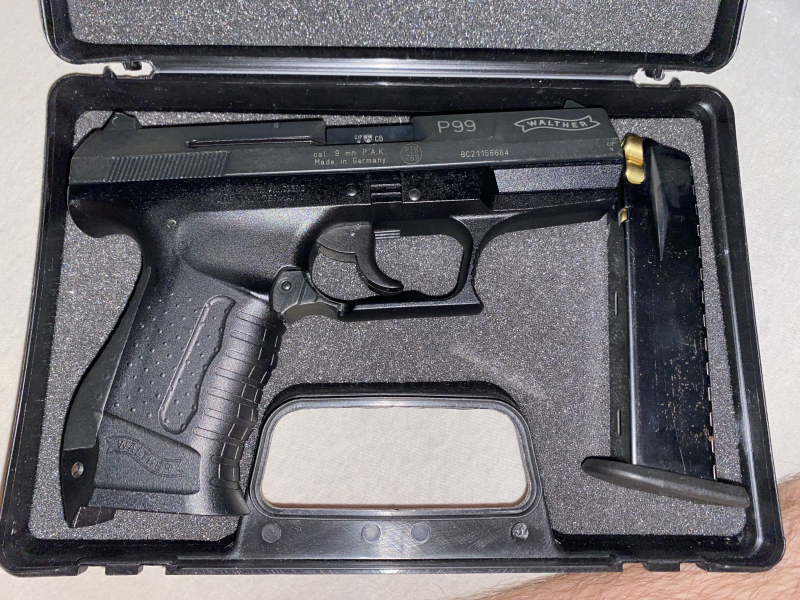 Walther P99 Schreckschuss + Koffer, 5 Platzpatronen & 1 PfefferpatroneeGun-ID: 20143101