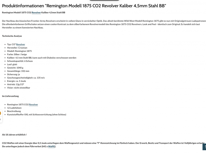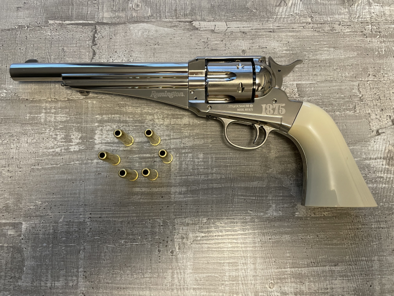 CO2 Revolver Crosman Remington 1875 Nickel Finish hochglanzpoliert Kaliber 4,5 mm BB und DiaboloeGun-ID: 20150380