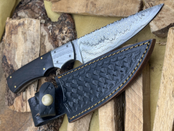Handgefertigtes Damast-Bowiemesser. Jagdmesser. Survivalmesser. Outdoormesser. Mit Scheide.eGun-ID: 20150659 - Artikel-Nr des Verk.: FA520