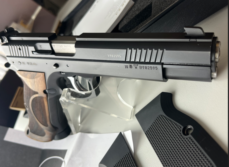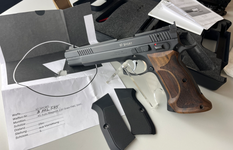 Grosskaliber Kurzwaffen > Sportpistolen > SIG Sauer neuwertige Pistole Waffen Oschatz CZ 97 Sport im Kal. 45 ACP. 6 ZolleGun-ID: 20151696
