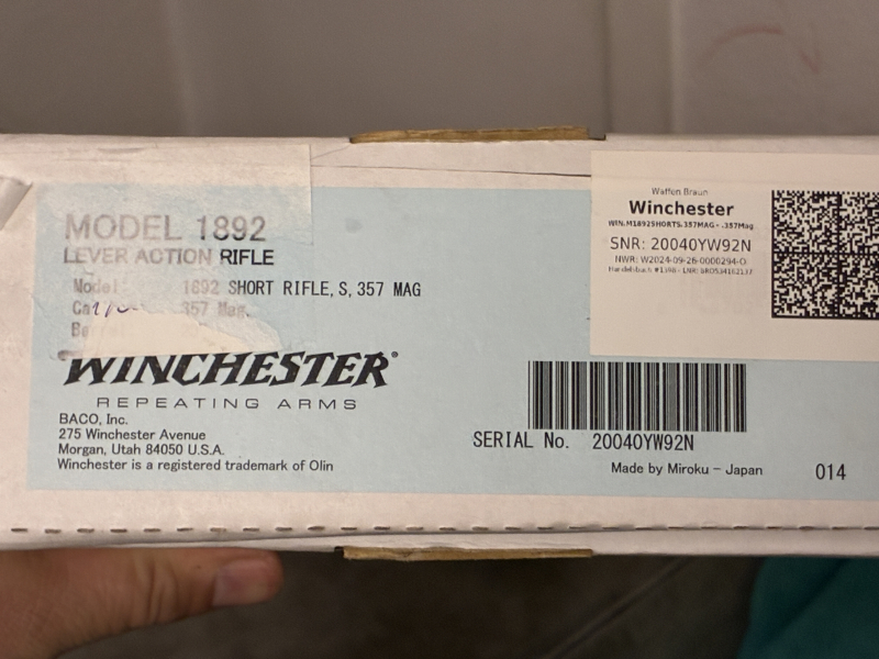 Winchester UHR 1892 Short Rifle 20 Zoll .357 Mag NEU no Marlin Savage Browning UnterhebelrepetierereGun-ID: 20160859