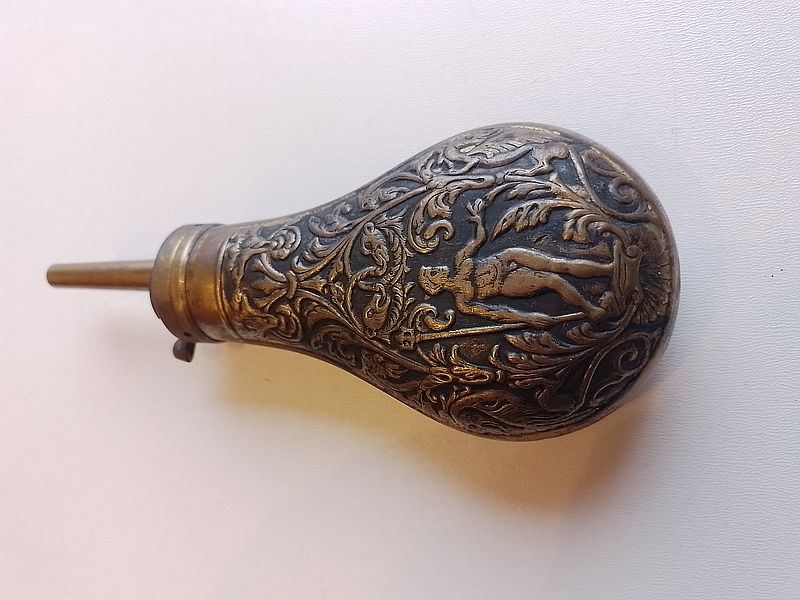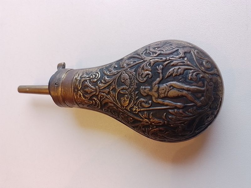 Dekorative kleinere Pulverflasche aus verm. MessingeGun-ID: 20160951