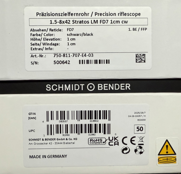 Neuware--- Schmidt&Bender S+B Stratos 1,5-8x42 mit ASV Höhe und Leuchtpunkt Abs. 4 fein LP7eGun-ID: 20164218 - Artikel-Nr des Verk.: Wb Nr