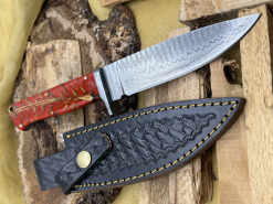Handgefertigtes Damast-Bowiemesser. Jagdmesser. Survivalmesser. Outdoormesser. Mit Scheide.eGun-ID: 20165101 - Artikel-Nr des Verk.: FA564
