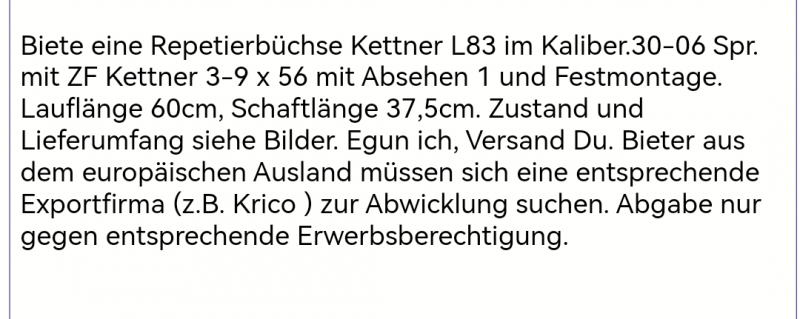 .30-06 mit Optik von Kettner 3-9x56 ZCZ Zawodi Crwena zastava BüchseeGun-ID: 20170146
