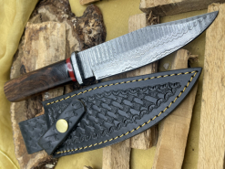 Handgefertigtes Damast-Bowiemesser. Jagdmesser. Survivalmesser. Outdoormesser. Mit Scheide.eGun-ID: 20171154 - Artikel-Nr des Verk.: FA580