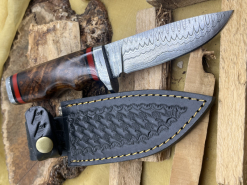 Handgefertigtes Damast-Bowiemesser. Jagdmesser. Survivalmesser. Outdoormesser. Mit Scheide.eGun-ID: 20171158 - Artikel-Nr des Verk.: FA583