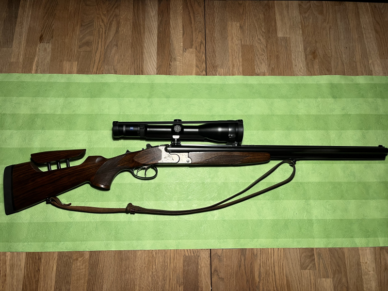 Jagdwaffen > Linksschützen-Waffen Krieghoff Plus Drilling mit 2 Schloss Handsp. im Kaliber 20/76,7x65R,.22 Hornet von vorne verstellbaeGun-ID: 20172775