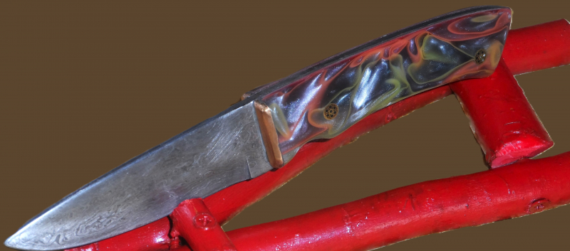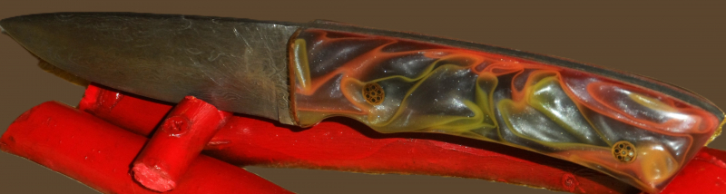 Damastmesser mit aussergewöhnlichem 3D EpoxidgriffeGun-ID: 20173613