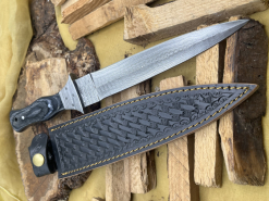 Handgefertigtes Damast-Bowiemesser. Jagdmesser. Survivalmesser. Outdoormesser. Mit Scheide.eGun-ID: 20175126 - Artikel-Nr des Verk.: FA595