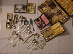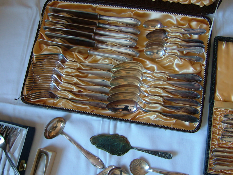 Jagdzubehör > Jagdmemorabilia 83-teiliges Silberbesteck-Konvolut – 40–100er Silberauflage – FamiliennachlasseGun-ID: 20178322