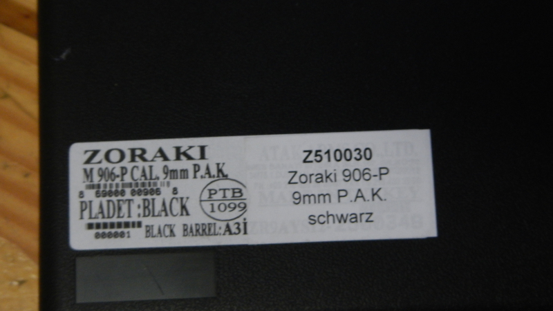 Schreckschuß Pistole Zoraki Modell 906 P Schwarz 9mm Knall PTB 1099 NAGELNEUeGun-ID: 20178797