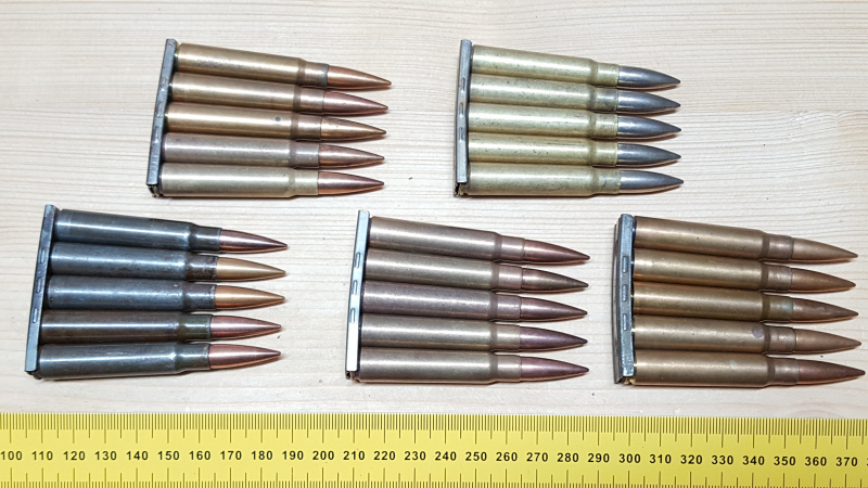 Sammlermunition: 25 Dekopatronen 7,9x57 Deutsch 2.WK. auf Ladestreifen.eGun-ID: 20181123 - Artikel-Nr des Verk.: 23