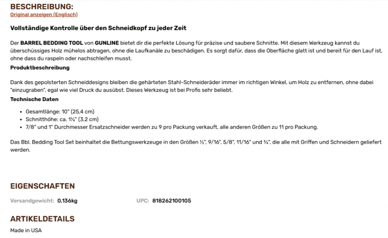 Büchsenmacherwerkzeuge > Holzbearbeitung Gunline barrel bedding tool 5/8, LaufbetthobeleGun-ID: 20182929 - Artikel-Nr des Verk.: 110125