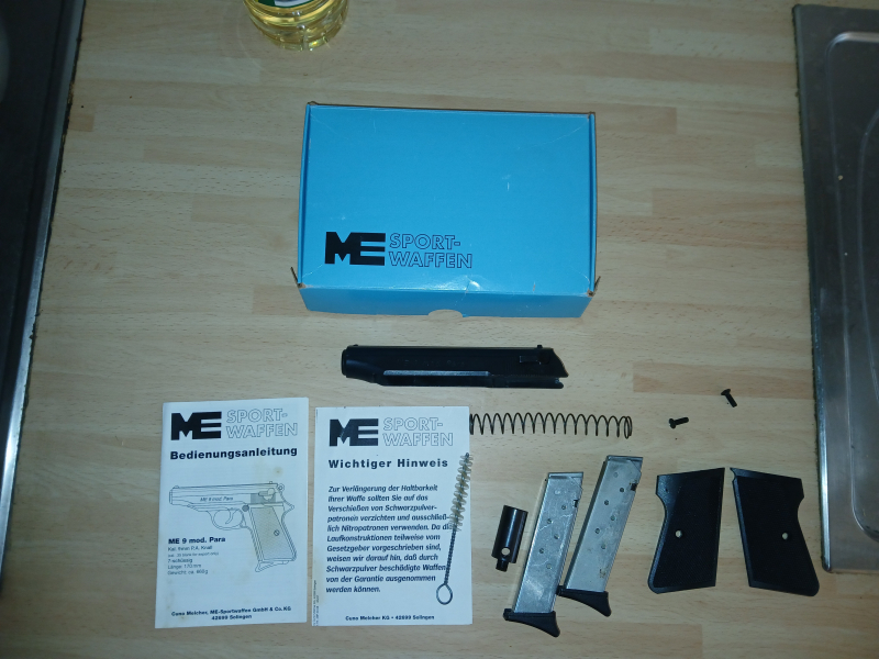 Schreckschusspistole Melcher ME 9 Mod. Para, Ersatzteilkonvolut, Magazine, Ovp.eGun-ID: 20183019