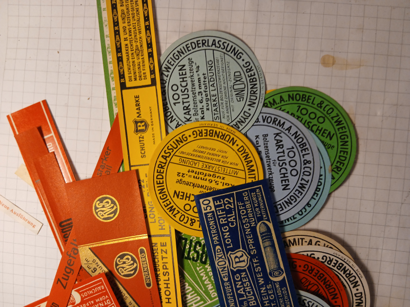Patronen Etikett,Nürnberg,Aufkleber,Sammlung,Konvolut,Patronenschachtel,RWSeGun-ID: 20184551