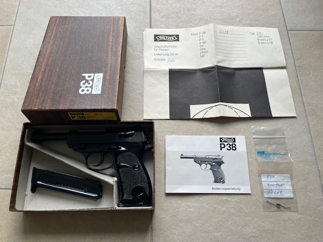 Walther P38 Kal. .22LR mit Stahlgriffstück!!! kompletter Set von 1989 - extrem selten!eGun-ID: 20185398