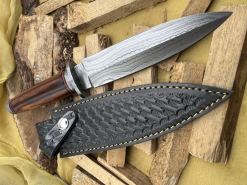 Handgefertigtes Damast-Bowiemesser. Jagdmesser. Survivalmesser. Outdoormesser. Mit Scheide.eGun-ID: 20185401 - Artikel-Nr des Verk.: FA623