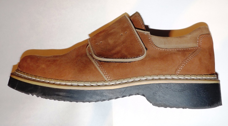 Neue, ungetragene Trachtenschuhe von Landhaus Gr. 43 Klettverschluß mit Edelweiß-Dekor-Knöpfen und BeGun-ID: 20186434