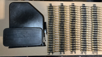 MG4 M249 Gurtkasten Ammo Box mit 100 x Dekomunition Patronen Messing 5.56 223 auf Zerfallgurt StahleGun-ID: 20186531