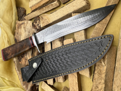 Handgefertigtes Damast-Bowiemesser. Jagdmesser. Survivalmesser. Outdoormesser. Mit Scheide.eGun-ID: 20187643 - Artikel-Nr des Verk.: FA632