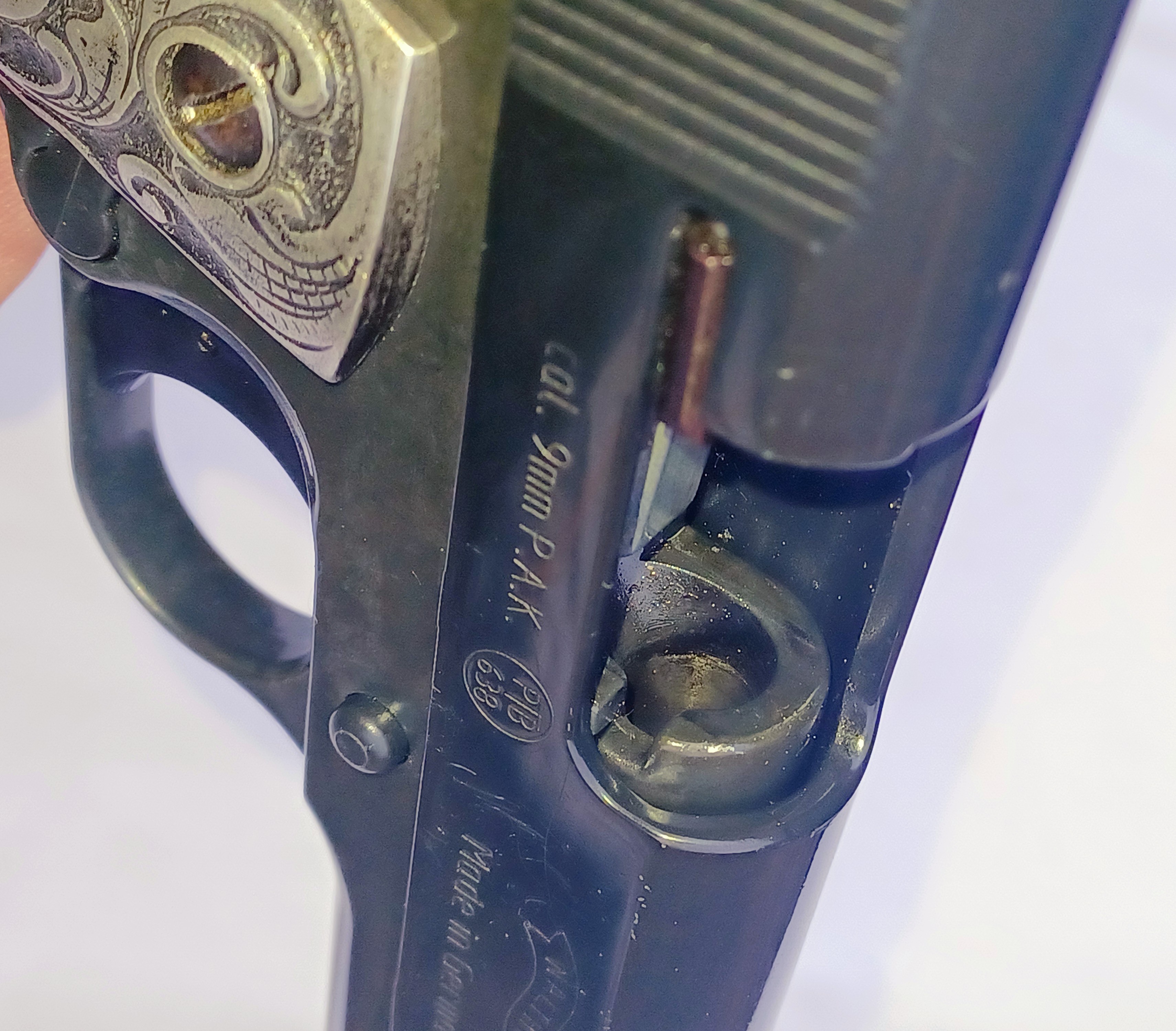 Walther Big Bore vgl.Colt Gov. 9mm PAK ...No. 1eGun-ID: 20189128