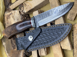 Handgefertigtes Damast-Bowiemesser. Jagdmesser. Survivalmesser. Outdoormesser. Mit Scheide.eGun-ID: 20190875 - Artikel-Nr des Verk.: FA640
