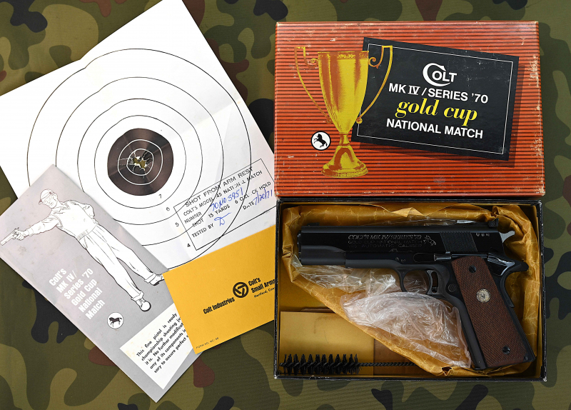 Sammlerstück: Pistole Colt Series 70 Mark IV Gold Cup Kal. .45 ACP, Bj. 1971, aber flammneu, in OVP!eGun-ID: 20191473 - Artikel-Nr des Verk.: 70N03951
