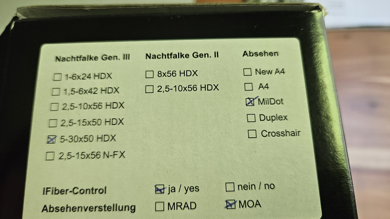 DDoptics Nachtfalke Gen. III, 5-30×50 HDX MilDot 1/8 MOA pro KlickeGun-ID: 20200966