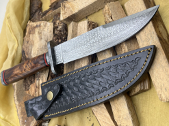 Handgefertigtes Damast-Bowiemesser. Jagdmesser. Survivalmesser. Outdoormesser. Mit Scheide.eGun-ID: 20203777 - Artikel-Nr des Verk.: FA693