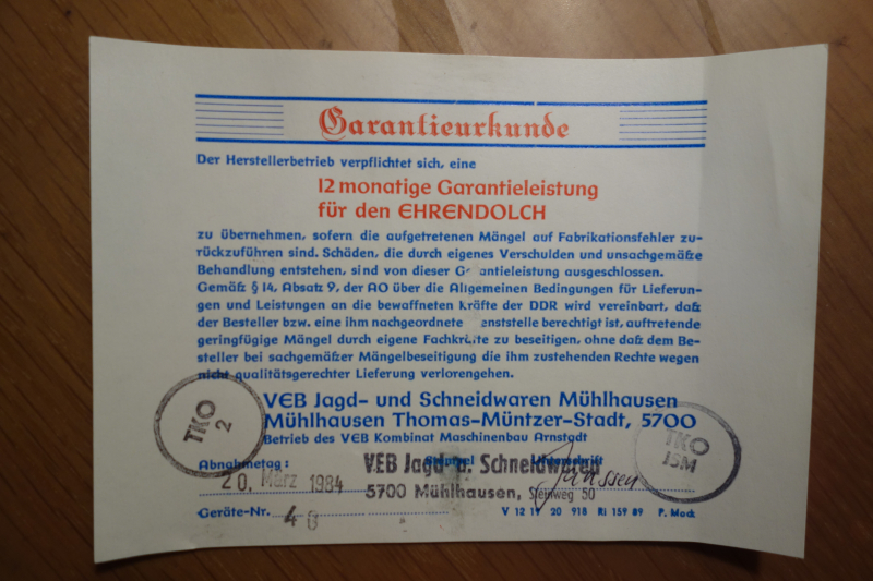 1 Ehrendolch DDR, Rarität, mit Klingeninschrift "Wachregiment Berlin Felix Dzierzinski"eGun-ID: 20203898