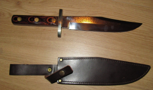 neuwertig:langes HERBERTZ Bowiemesser32cm,verzierte fest stehende Klinge,m.Lederscheide/HirschfängereGun-ID: 20205944