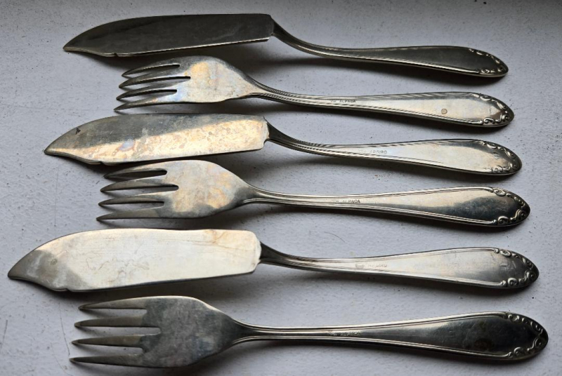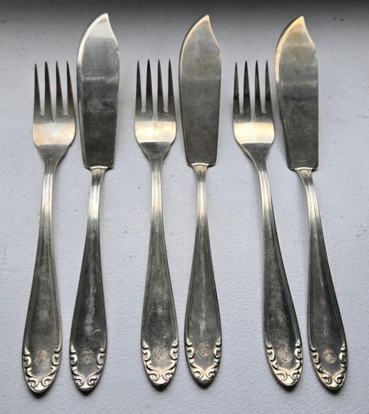 Blankwaffen > Sonstige 6 "SA" Gabel+Messer / FischBesteck, Metall silbern Besteck cutlery, Alpacca...eGun-ID: 20206521