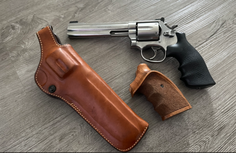 neuwertiger Revolver S&W 686-4, 6 Zoll inkl. Holster und Ersatzgriff im Kal. 357 Mag.eGun-ID: 20208164
