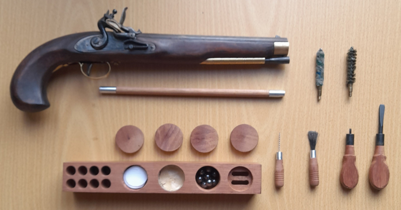 Steinschloss Vorderlader- Pistole „Kentucky" Kal. 45 mit ZubehöreGun-ID: 20210421