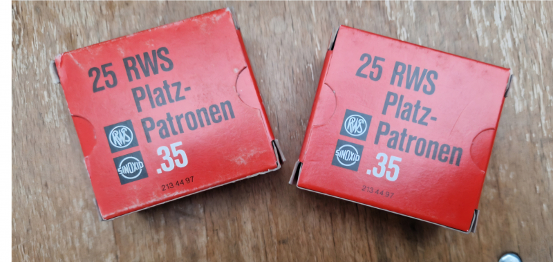 Munition > Salut > Knallpatronen .35 RWS PLATZPATRONEN - in roter Papschachtel - SELTEN - Wird seit langem nicht mehr hergesteGun-ID: 20211253