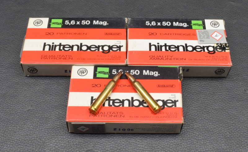 60 Patronen Hirtenberger Kal. 5,6x50 Mag.; Nosler 3,56gr./55gr.eGun-ID: 20211281