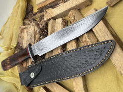Handgefertigtes Damast-Bowiemesser. Jagdmesser. Survivalmesser. Outdoormesser. Mit Scheide.eGun-ID: 20213410 - Artikel-Nr des Verk.: FA733
