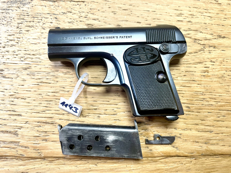 Pistole CG Haenel Suhl Schmeisser s Patent Kal. 6,35mmBrowningeGun-ID: 20216402 - Artikel-Nr des Verk.: 1143