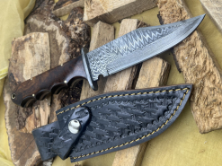 Handgefertigtes Damast-Bowiemesser. Jagdmesser. Survivalmesser. Outdoormesser. Mit Scheide.eGun-ID: 20217481 - Artikel-Nr des Verk.: FA744