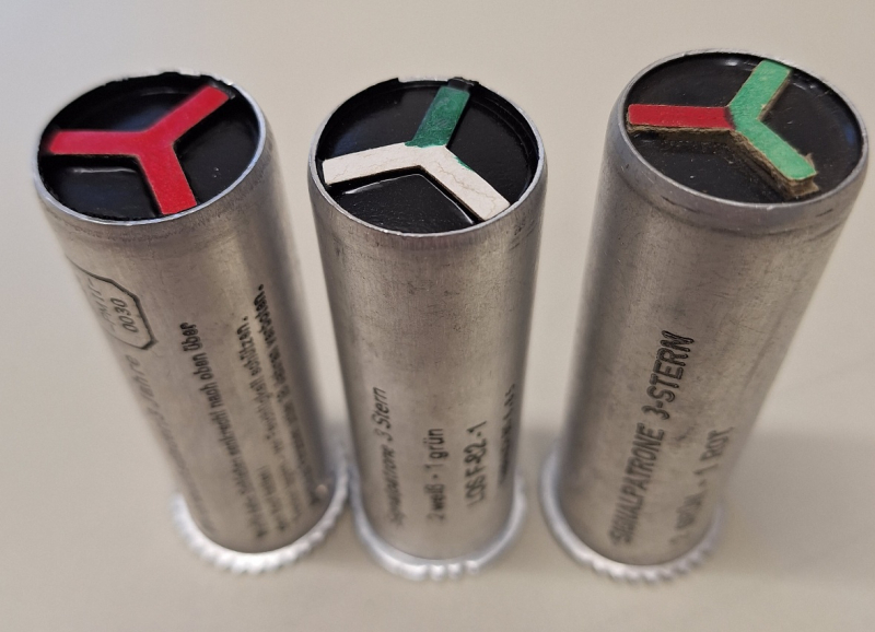 Sammlerwaffen/-munition > Sammlermunition > Sonstige Konvolut Signalpatronen 3 Stern 26,5mm Kal.4eGun-ID: 20221133