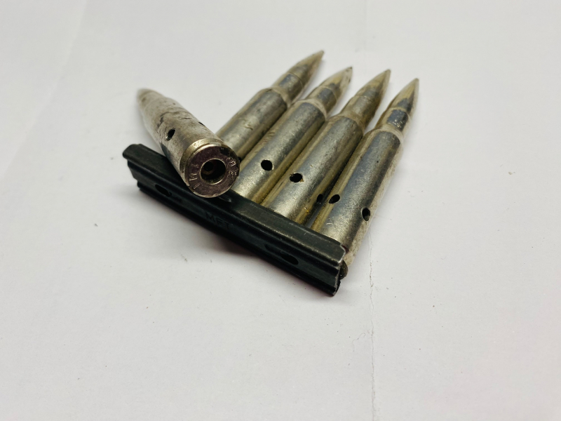 5 Exerzierpatronen im Kaliber .308 Winchester auf Ladestreifen, gefertigt von IMIeGun-ID: 20221196