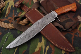 Custom Handmade Damascus Steel Hunting Bowie Knife with Wood Handle |#99eGun-ID: 20222878